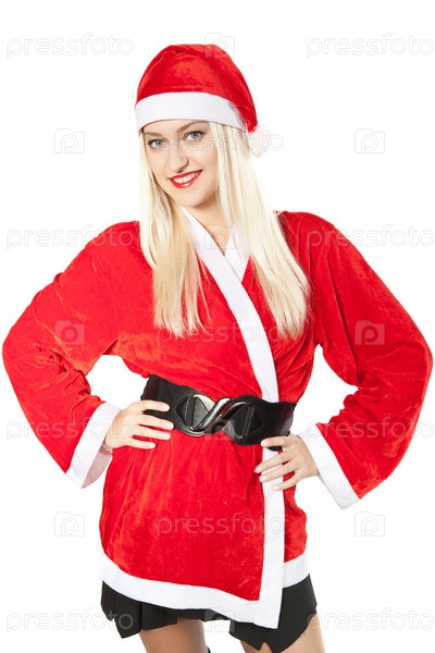 Молодая женщина в костюме Санта-Клауса