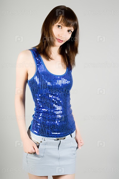 Красивая девушка в элегантном платье на сером фоне