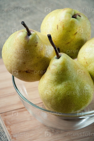 Спелые груши в стеклянной вазе