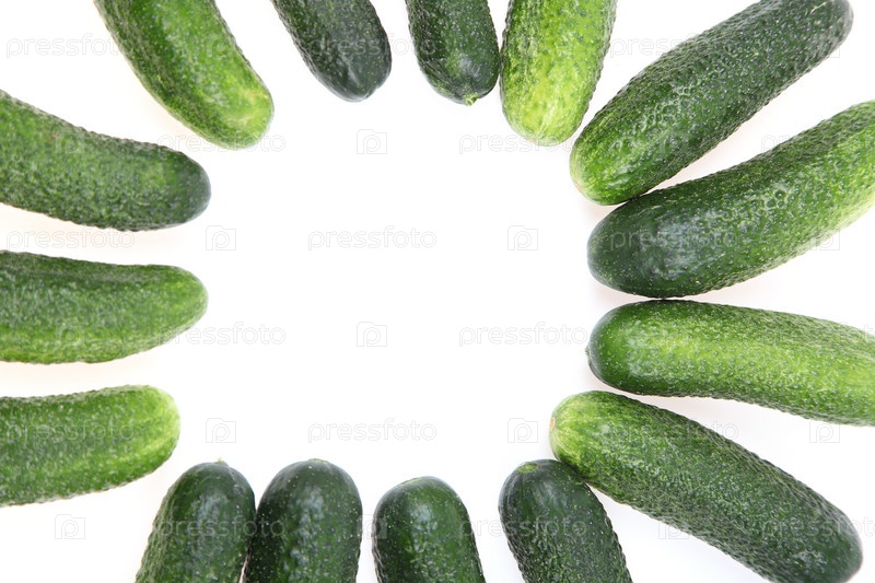 Рама из огурцов на белом фоне