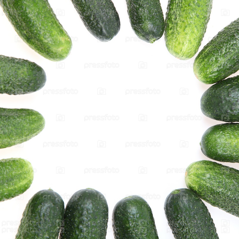 Рама из огурцов на белом фоне