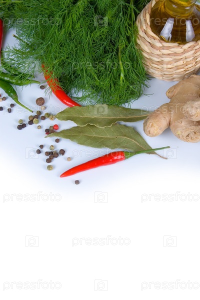 Различные специи на белом фоне