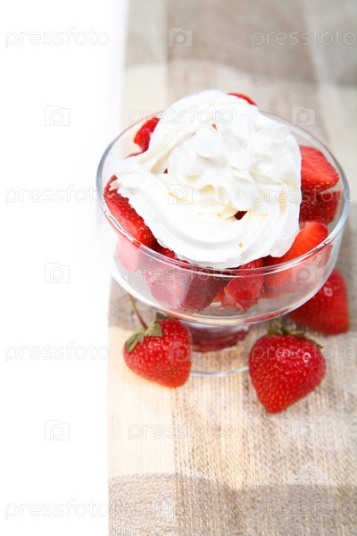 Клубника со взбитыми сливками на столе. Летний десерт