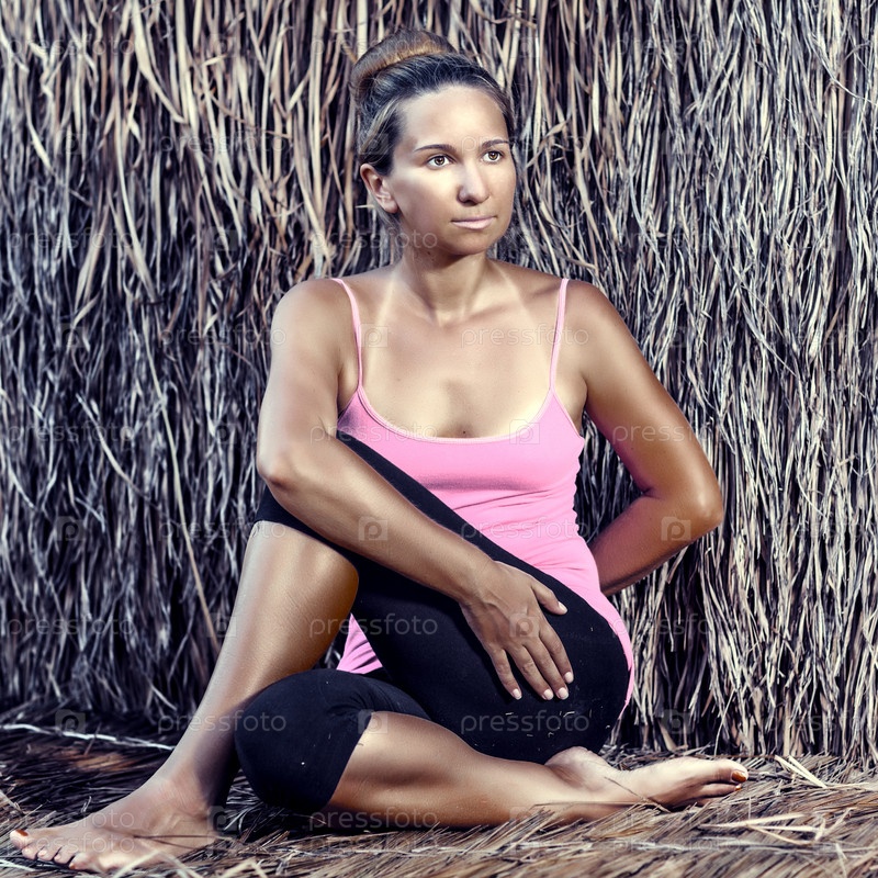 Красивая молодая женщина делает упражнения йоги