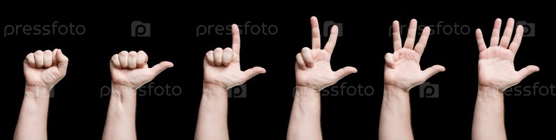 Счет на пальцах от нуля до пяти на черном фоне