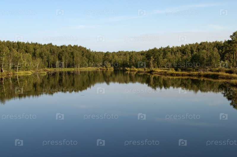 Лесное озеро утром в начале лета
