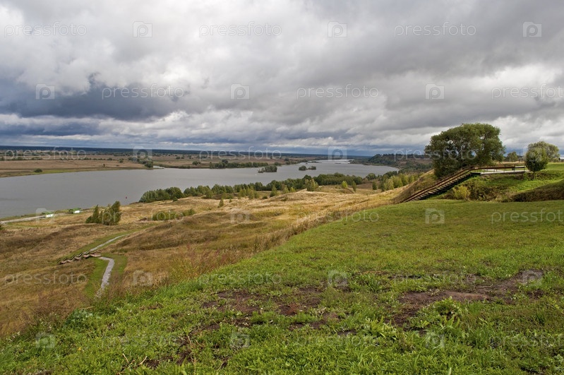 Вид реки Оки близ села Константиново Рязанской области, Россия. Родина русского поэта Сергея Есенина