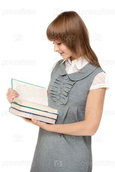 Молодая девушка с книгами в руках