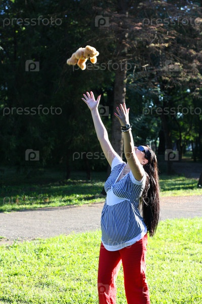 Молодая беременная женщина на прогулке в парке