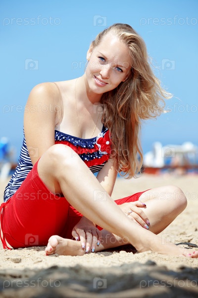 Молодая женщина отдыхает на пляже летом