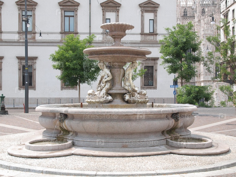 Фонтан Пьермарини на площади Пьяцца Фонтана, Милан, Италия