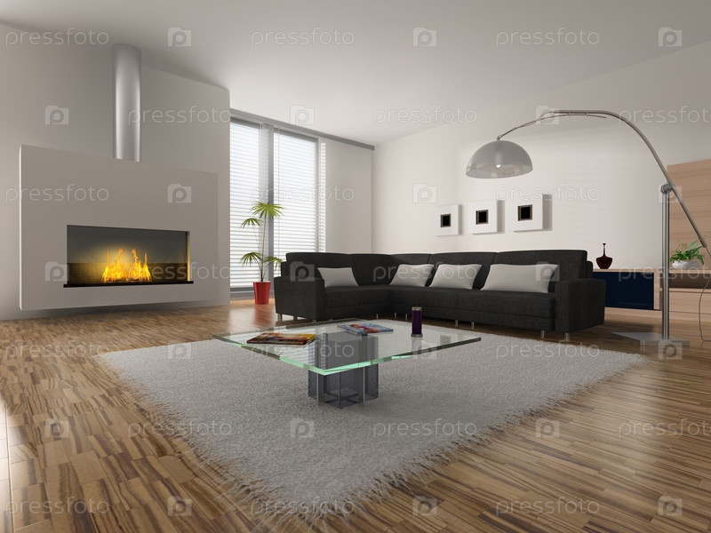 Интерьер комнаты с мягкой мебелью и камином