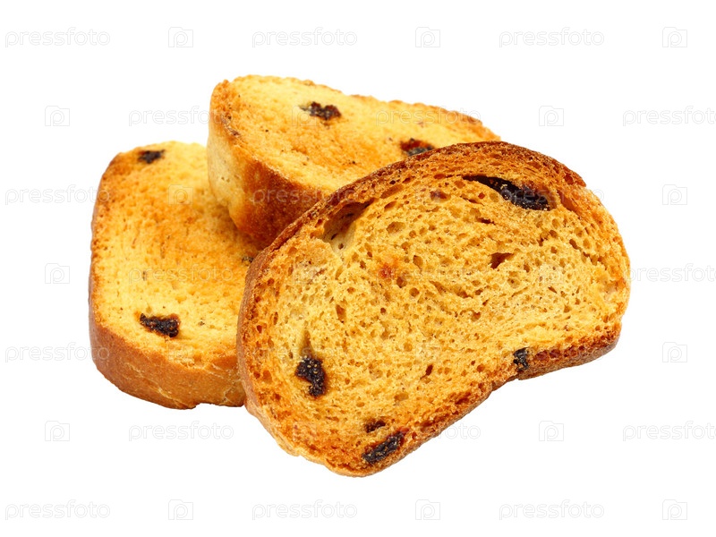Сладкие вкусные сухари с изюмом, изолированные на белом фоне