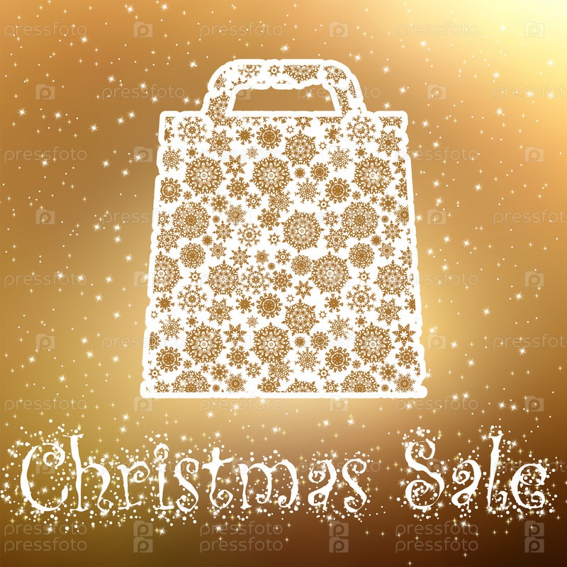 Сумка для покупок с золотыми снежинками на фоне.Векторный файл EPS 8 включен