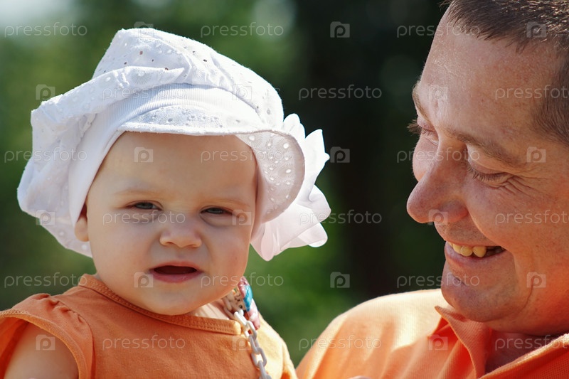 Портрет мужчины с красивой белокурой дочерью в панаме