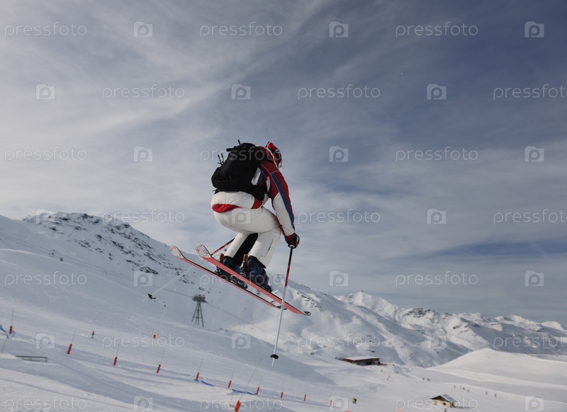 Экстремальный фристайл на трамплине. Молодой человек на горе в зимнем снежном парке