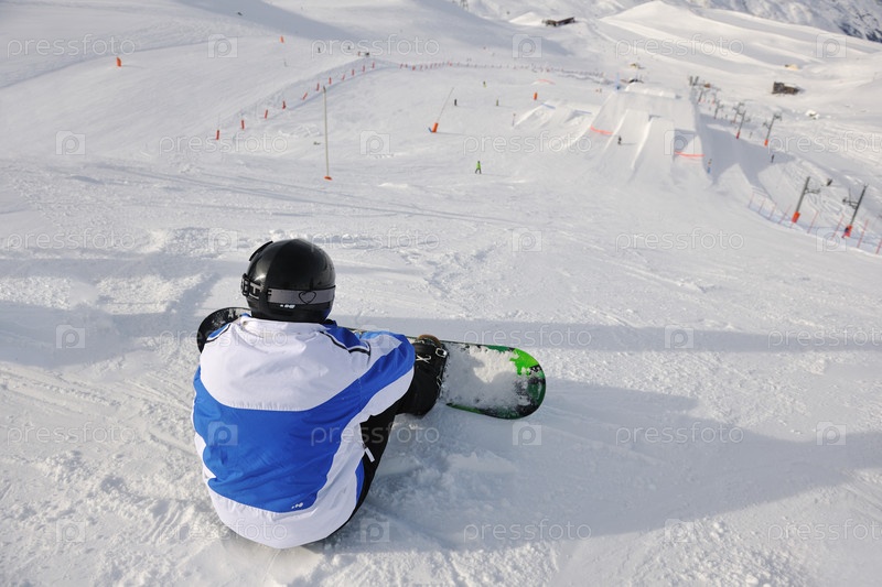 Сноубордист на склоне горы