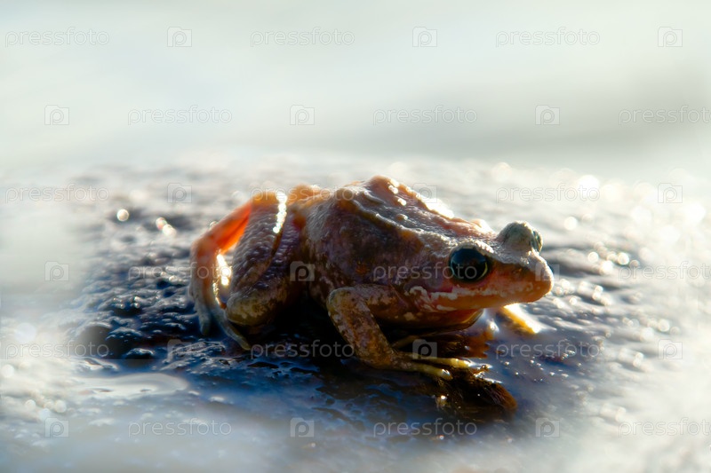 Коричневая лягушка, rana temporaria, на камне в воде