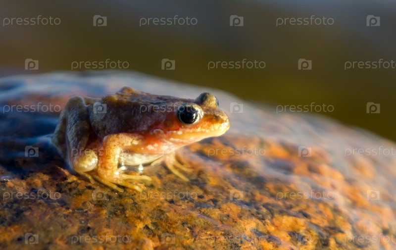 Коричневая лягушка, rana temporaria, на камне в воде