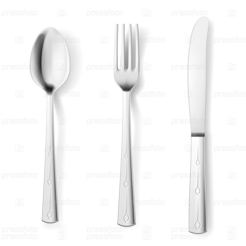 Столовые приборы: вилка, ложка и нож. Иллюстрация на белом фоне для дизайна