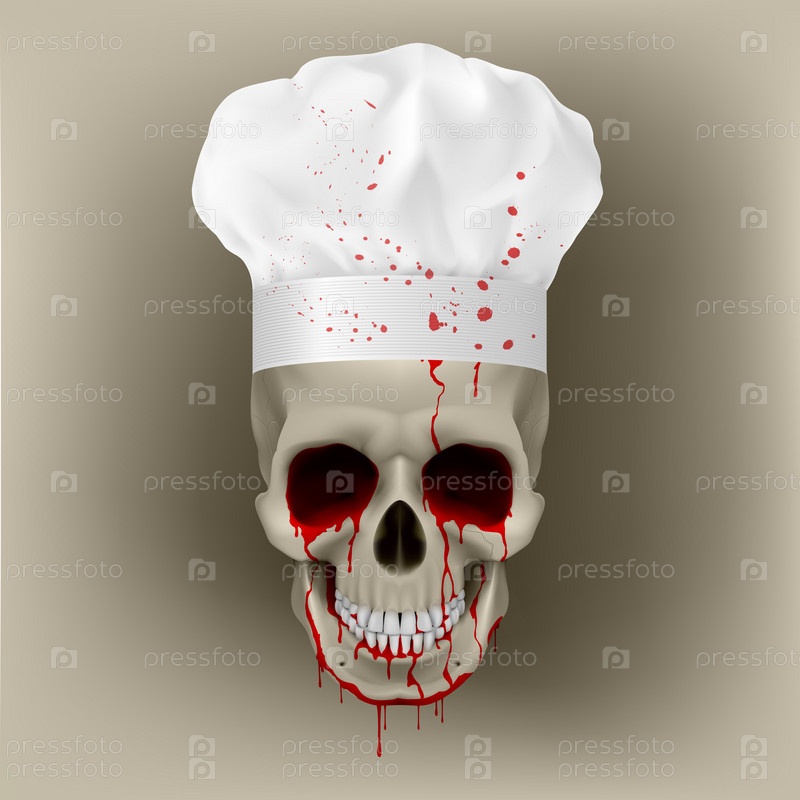 Кровавый череп в колпаке шеф-повара. Иллюстрация для дизайна