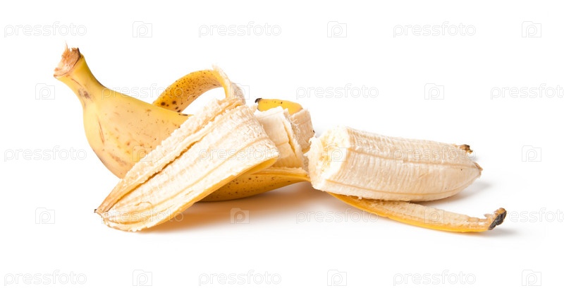 Очищенный банан на белом фоне