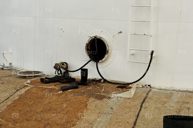 Открытый люк в маслобак и грязные маслянные сапоги