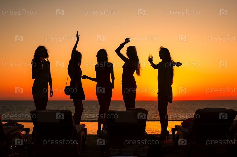 Силуэты девушек на фоне моря и заката