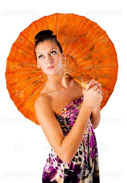 Молодая красивая женщина с азиатским зонтиком