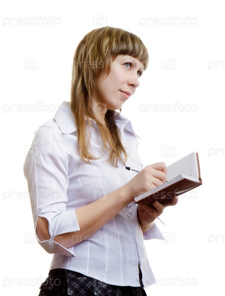 Девушка в белой блузке пишет в записной книжке