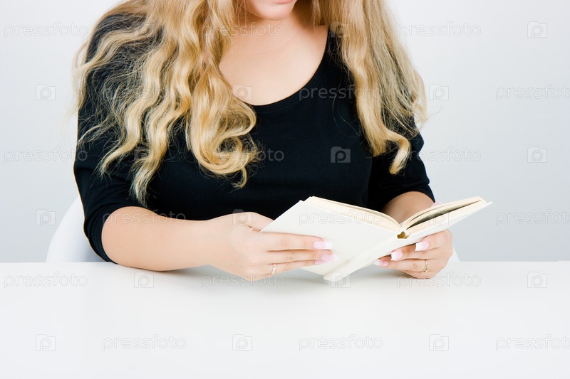 Девушка с длинными светлыми волосами читает книгу