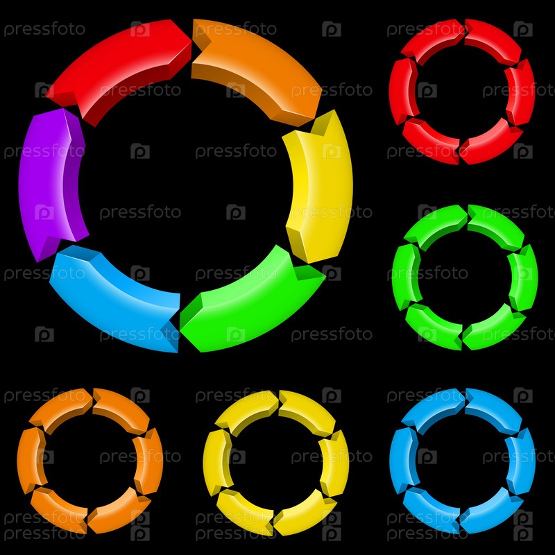 Набор из кругов из стрелок. Иллюстрация для дизайна на черном фоне