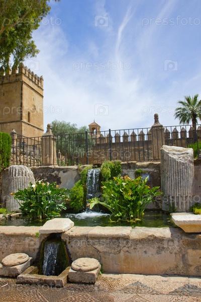 Фонтан в саду Алькасар-де-лос-Рейес Кристианос, Кордова, Испания