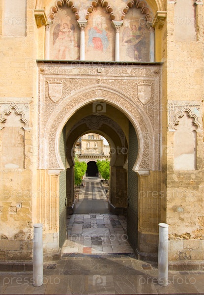 Главный вход в дворик Лос-Наранхос в мавританском стиле в соборной мечети, Кордова, Испания
