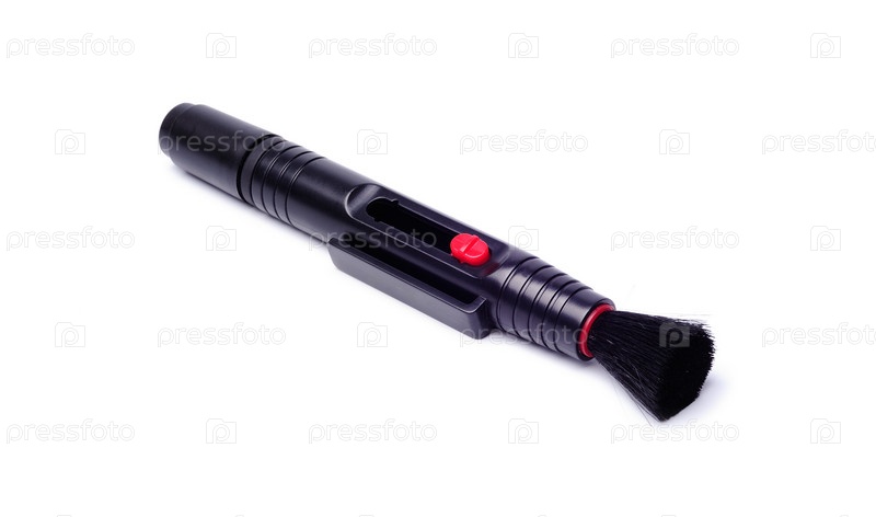 Щетка для чистки оптики, изолированная на белом фоне