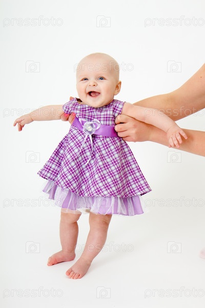 Маленькая девочка с красивом платье на белом фоне