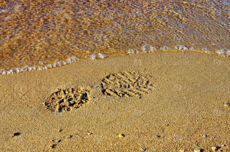 След ботинка на песчаном берегу