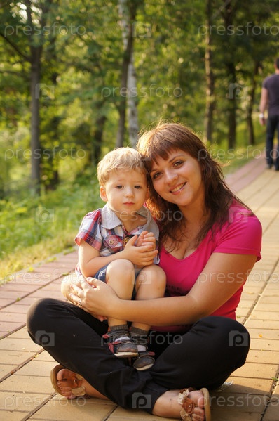 Маленький мальчик с мамой на прогулке