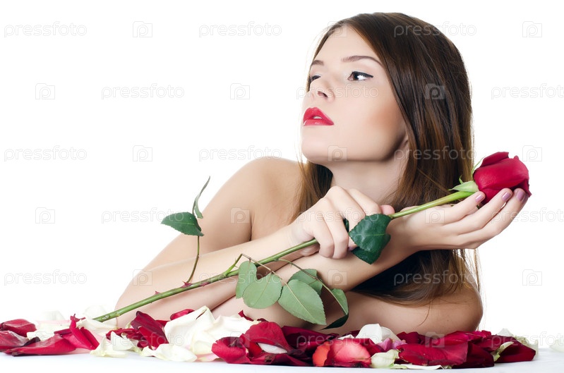 Красивая девушка с лепестками роз