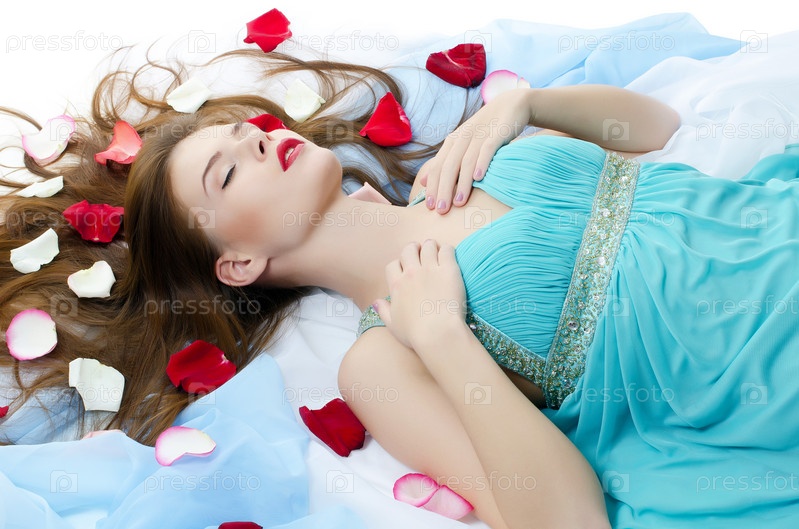 Красивая девушка с лепестками роз