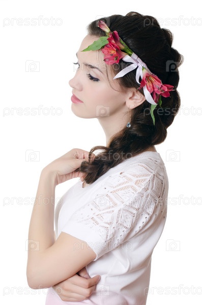 Портрет девушки с цветами в волосах