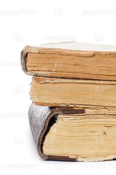 Куча старых книг на белом фоне