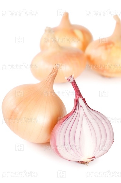 Свежий лук на белом фоне