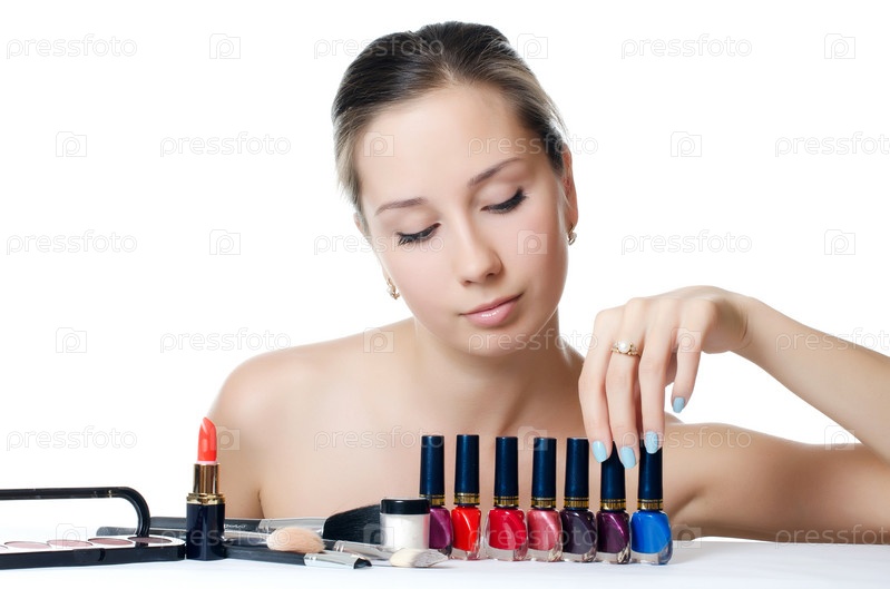 Красивая женщина с набором косметики