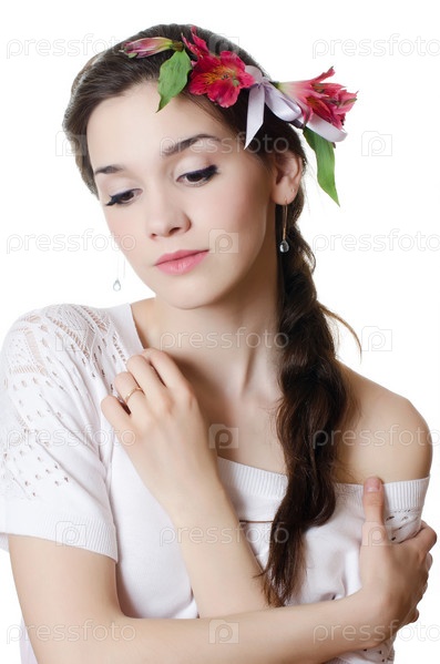 Портрет девушки с цветами в волосах