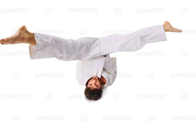 Молодой человек в кимоно, изолированный, на белом фоне