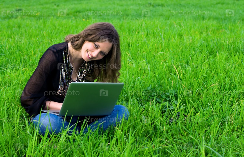 Девушка с ноутбуком на природе