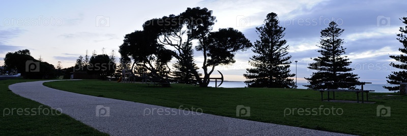 Дорога и силуэты сосновых деревьев в Санрайз Бич Парк
