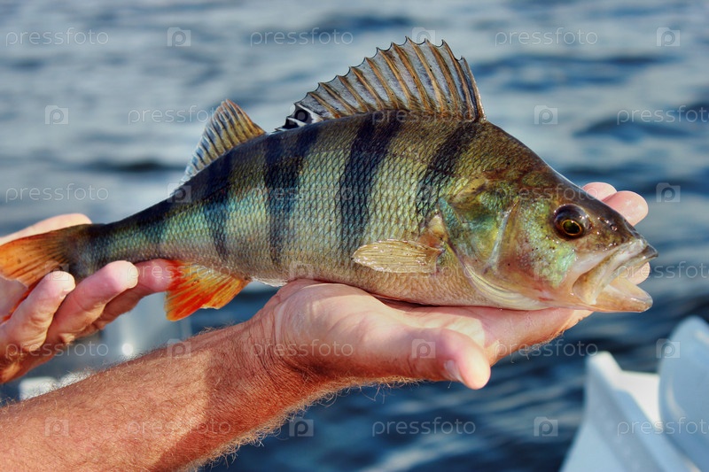 Пойманный окунь в руке