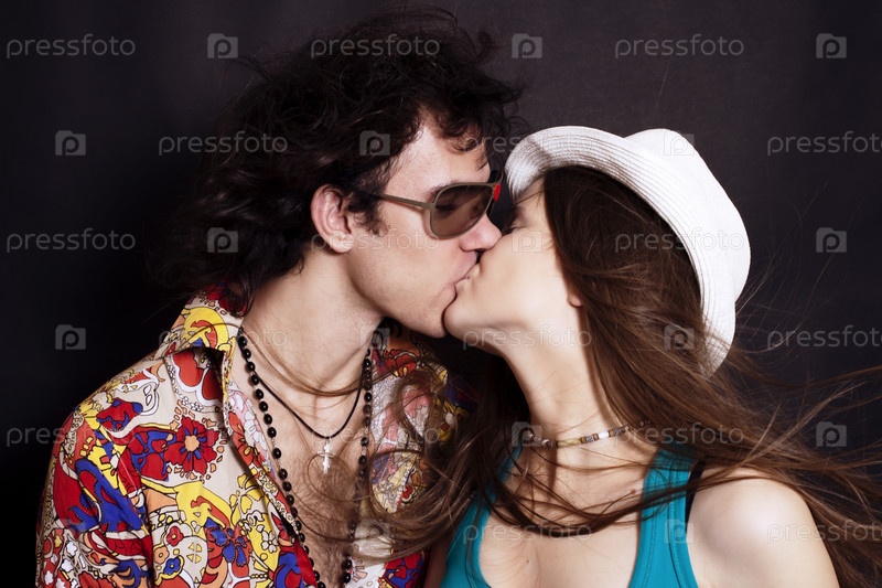 Молодая пара целуется на черном фоне